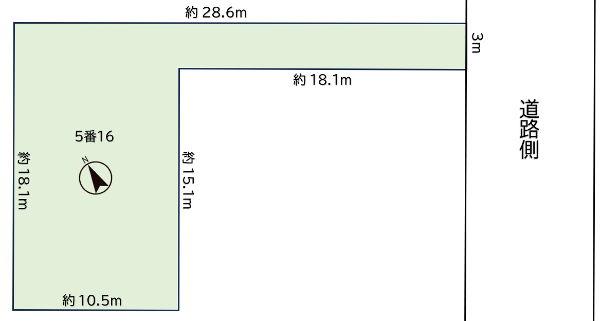| 接道状況 | 南東側約8mの公道に間口約3m接する |